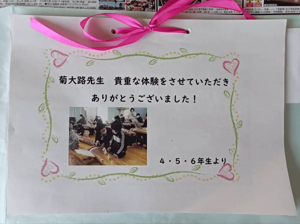 今後は教育委員会のご支援もいただき、さらに充実し子供たちに、より一層楽しい音楽のお箏授業をさせてあげる事ができていくことを楽しみにしています。